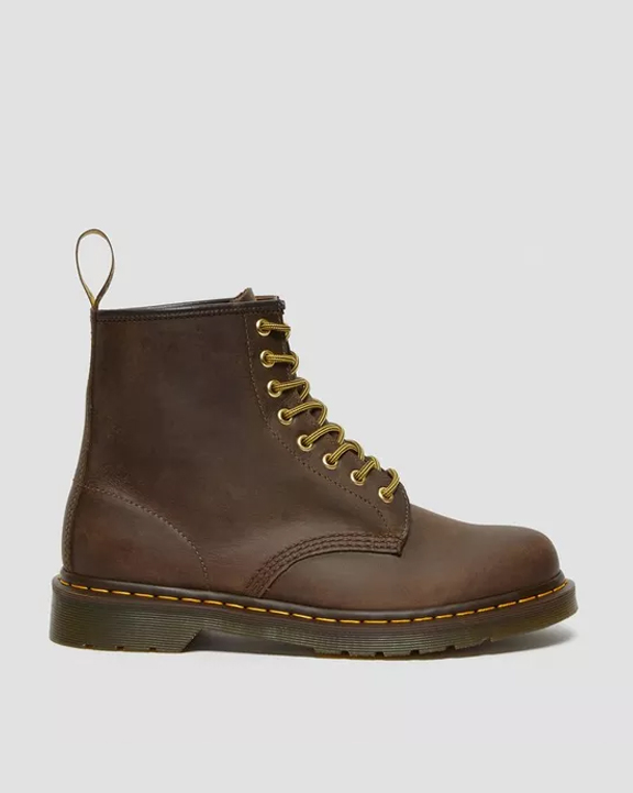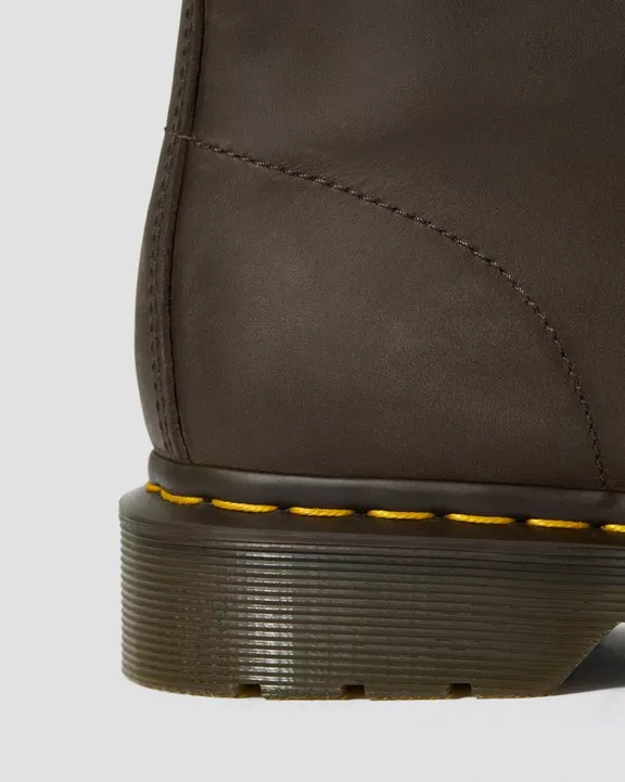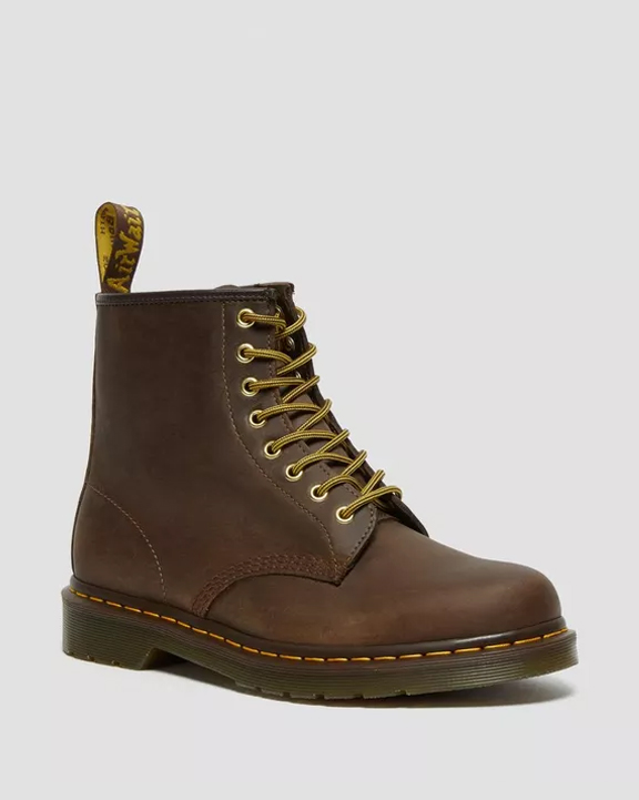 Un cuero nuevo para un modelo clásico: esta emblemática bota 1460 de 8 ojalillos lleva un cuero sólido Crazy Horse con un aspecto usado y envejecido. Esta bota unisex lleva todo lo que representa el ADN de las clásicas Docs: bordes estriados, lengüeta de cuero y puntada amarilla. Hecha para durar, se ha creado siguiendo uno de los mejores métodos de construcción: la vira Goodyear. Esto significa que la pala y la suela están termoselladas y cosidas con una puntada en Z. La bota descansa sobre nuestra emblemática suela AirWair™, resistente al aceite y a la grasa, antiabrasión y antideslizante. Empeine: 100% Cuero. Forro y plantilla: 75% Textil, 25% Cuero. Suela: