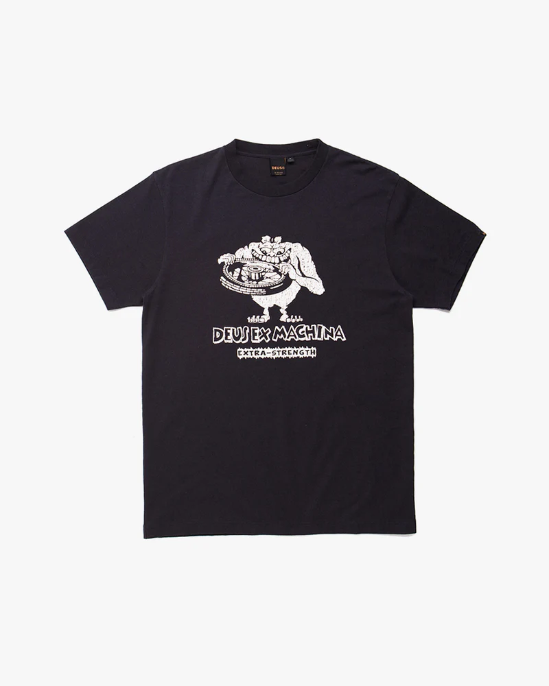 "The Rat Finx Tee¬†is a part of the Deus Ex Machina Fall¬ Mens Collection. This¬†regular fit t-shirt¬†features: ‚ó謆Chest and back prints of original Deus artwork ‚ó謆100% recycled cotton 200gm jersey fabrication ‚ó謆A¬†heavy enzyme stone wash Designed and tested at the Deus House of Simple Pleasures, Camperdown, Sydney. Size (cms) XS S M L XL XXL XXXL Chest Width 46.5 49 51.5 54.5 58.5 63 67.5 Body Length 70 71.5 73 74.5 77 79.5 82 X Shoulder Width 44.1 45.3 46.5 47.7 48.9 50.4 51.9 Sleeve Length 19 19.5 20 20.5 21 21.5 22 "