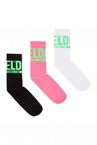 Paquete de tres calcetines para hombre confeccionados en una rica mezcla de algodón orgánico. Cada par tiene suela de felpa gruesa y acolchada, y puños en canalé tejidos en jacquard con el logotipo de Diesel For Successful Living.